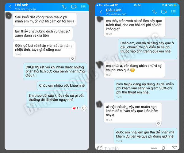 Phản hồi của một số chị em sau khi đặt vòng tránh thai tại phòng khám: